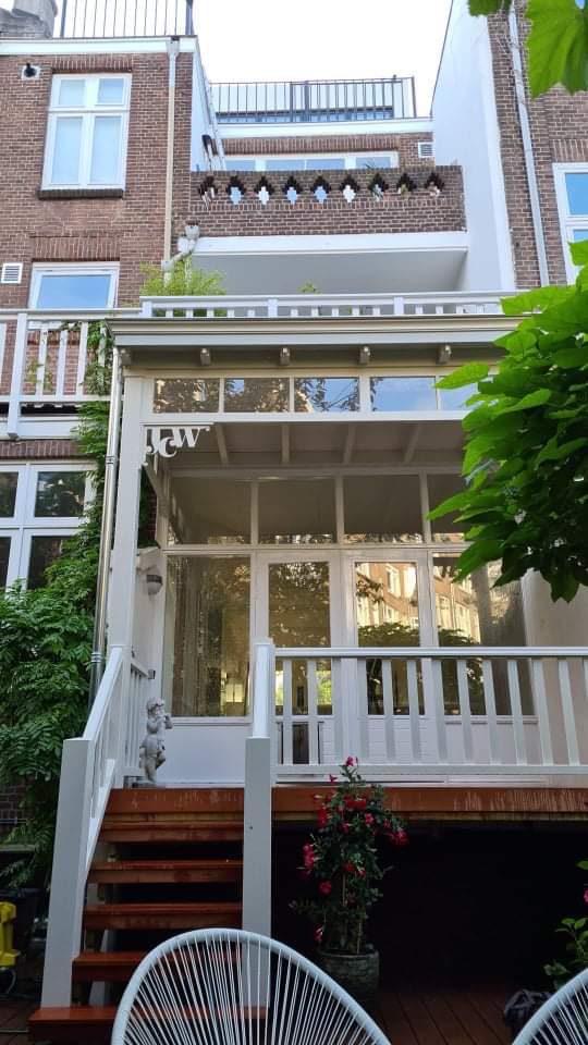 Een herenhuis in de stad? Zo’n verhoogde houten veranda bij jouw herenhuis staat niet alleen prachtig, maar biedt ook veel wooncomfort. Zo ontstaat een heerlijke uitloop op de woonlaag. Zet de openslaande deuren maar wagenwijd open. Het regent in ieder geval niet meer binnen. Op het terras van de veranda vind je volop privacy en een mooi zicht op de lager gelegen tuin. Bereikbaar via de prachtige trap.